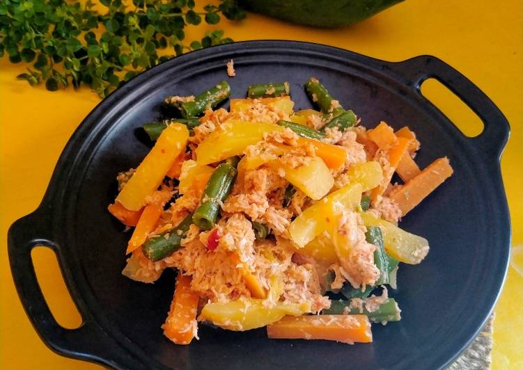 - Rebus semua sayuran hingga kematangan yang diinginkan. Angkat, tiriskan. Campurkan sayuran pada bumbu kelapa tadi. Angkat ke piring saji. Siap disajikan dengan nasi anget..